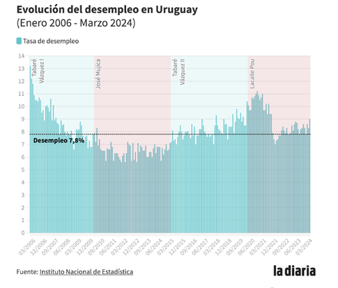 En una publicidad partidaria, el senador Sebastián Da Silva afirmaba que durante la pasada administración (2020–2023) se alcanzó “la menor tasa de desempleo de los últimos 30 años”, haciendo referencia a la tasa de 7.8 % correspondiente al cierre del año 2023.