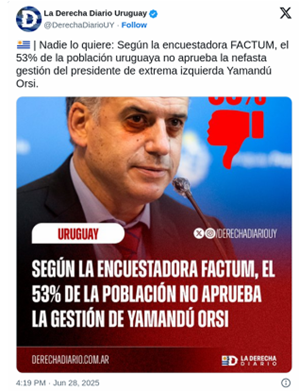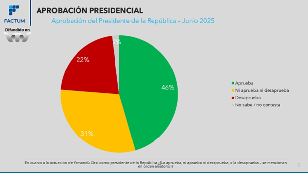 Consulta la fuente de datos aquí: FACTUM Aprobación presidente Yamandú Orsi - Junio 2025