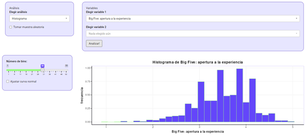 Localiza los valores de tendencia central para la variable Apertura a la experiencia y regístralos