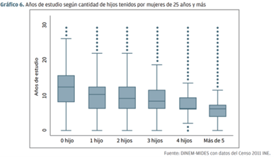 - A mayor número de hijos, la mediana de años de estudio disminuye