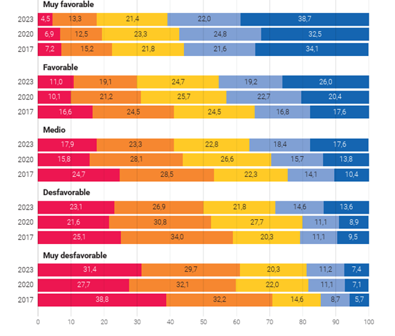 El siguiente gráfico fue trabajado en uno de los videos correspondientes a esta semana. El mismo fue extraído del informe de Aristas 2023, publicado por el Instituto Nacional de Evaluación Educativa.
